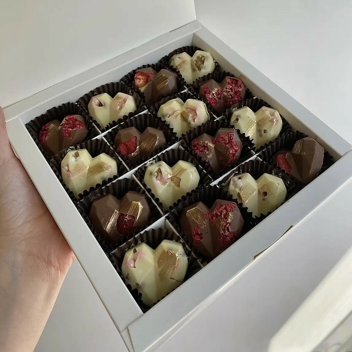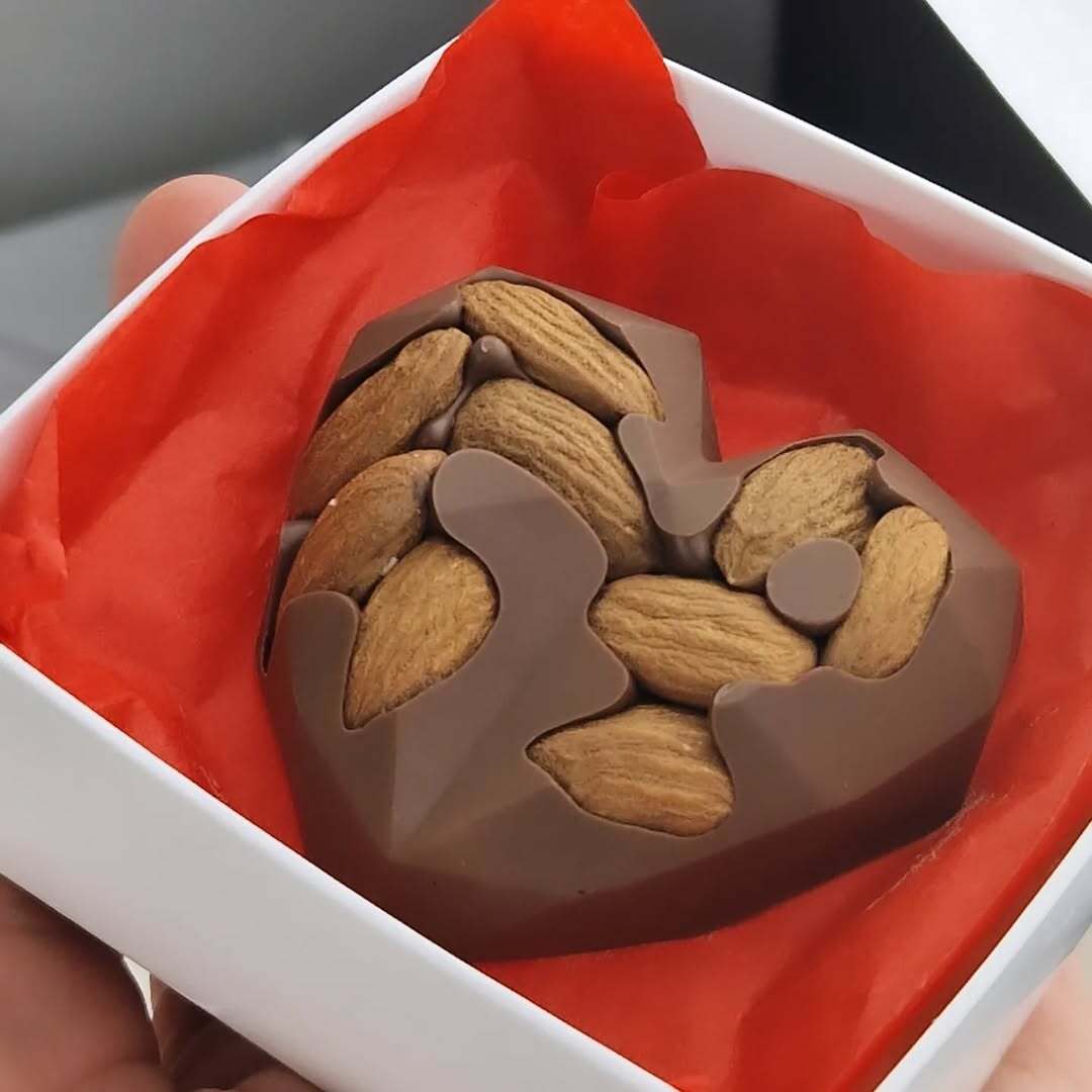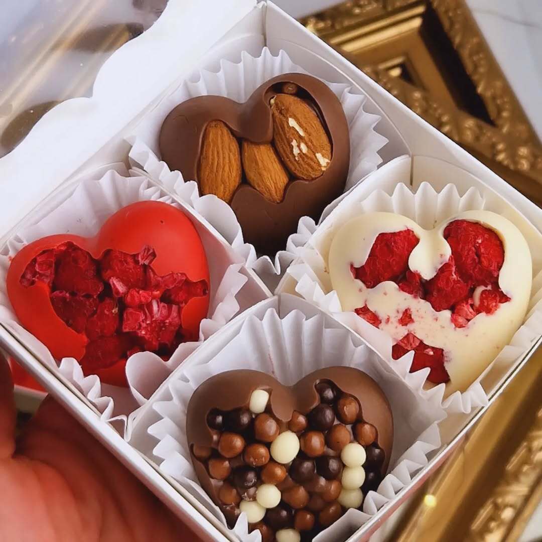 Кожне сердечко створене вручну й доповнене щедрим декором, що робить його не лише смачним, а й візуально дуже апетитним 🍫✨