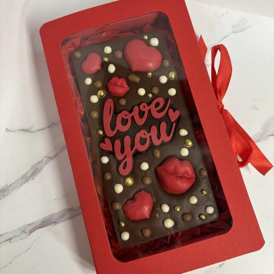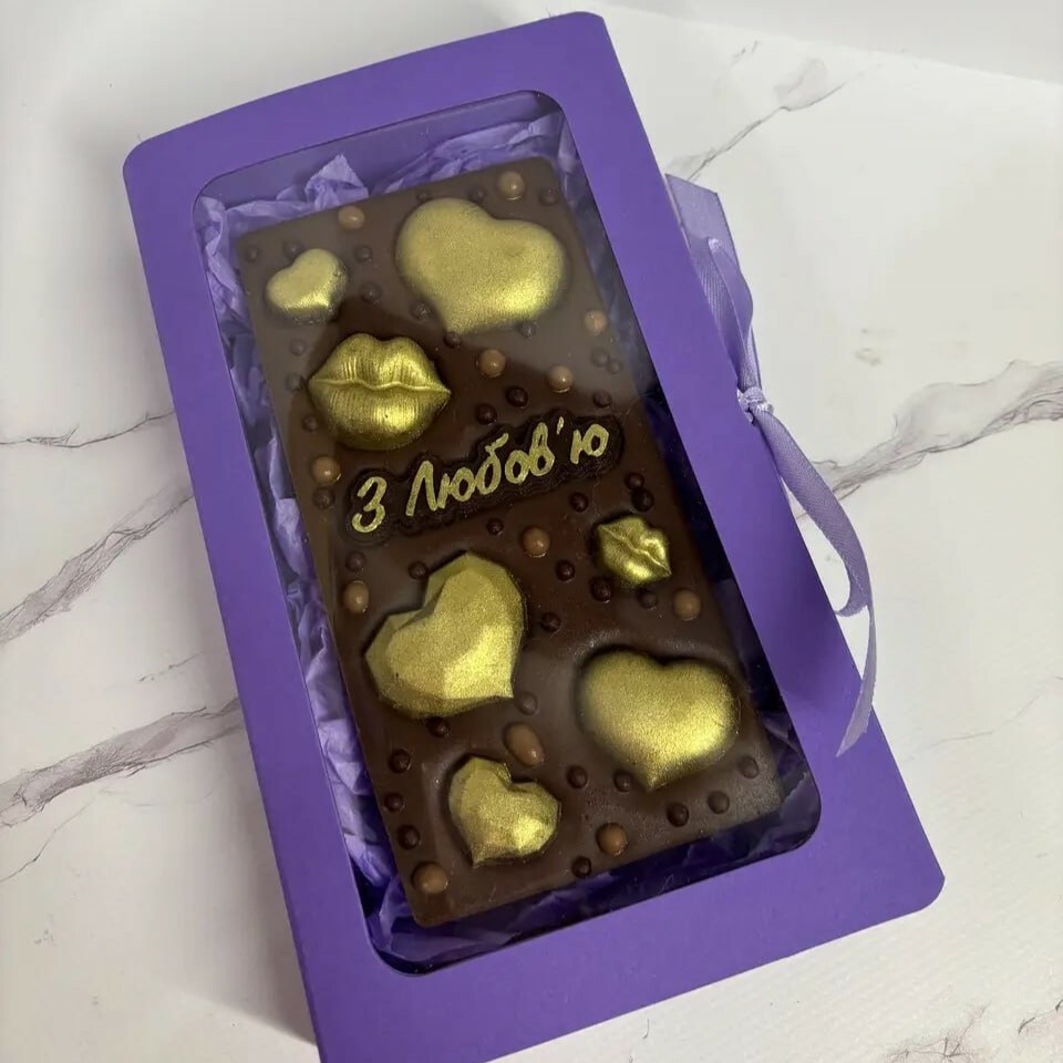 ✨ Вишукана шоколадна плитка ручної роботи з натурального шоколаду, декорована обʼємними сердечками, поцілунками та стильними акцентами. Кожен дизайн доповнений теплим посланням, що робить цей подарунок особливо емоційним і щирим.🎁
