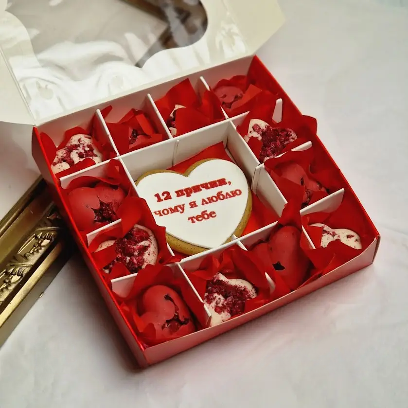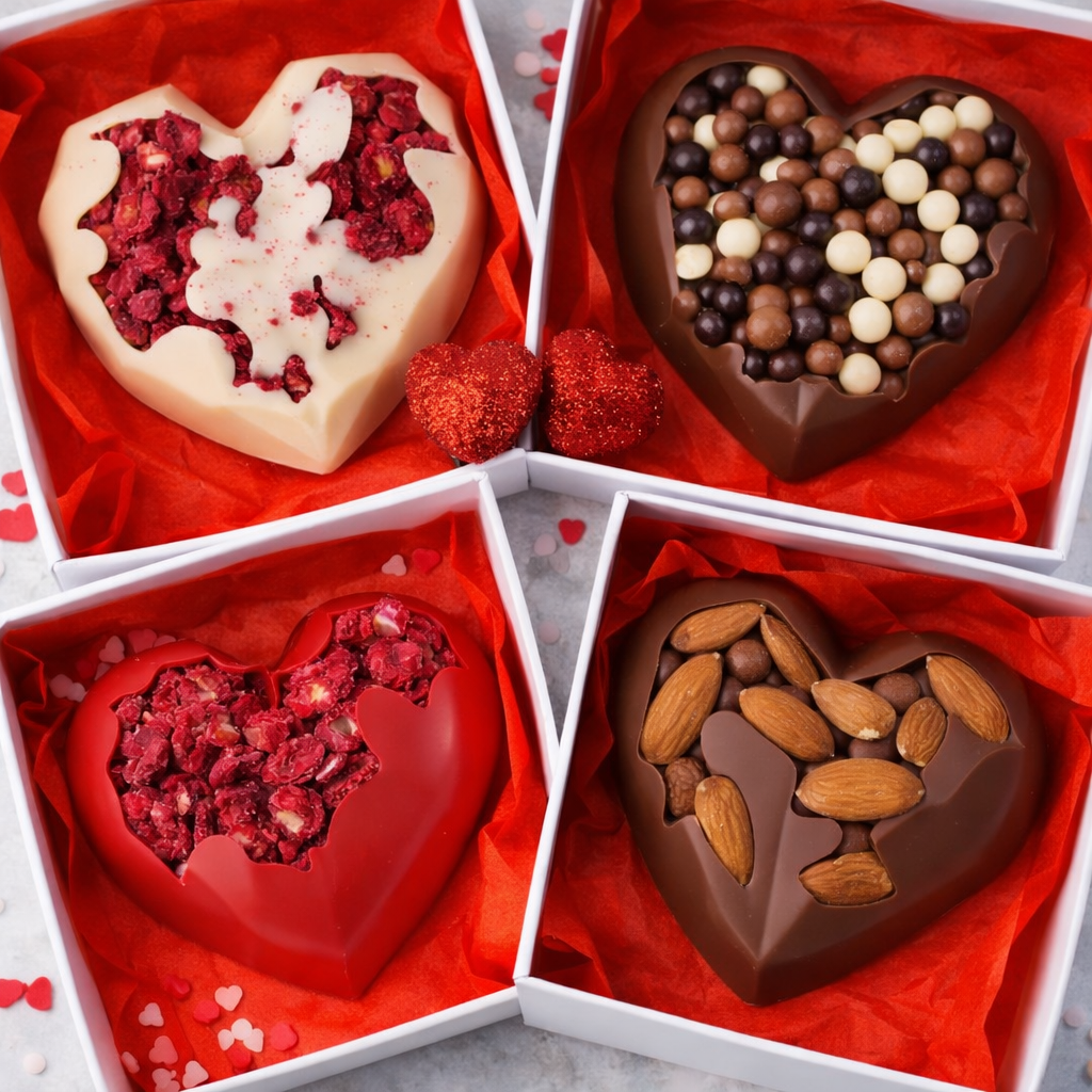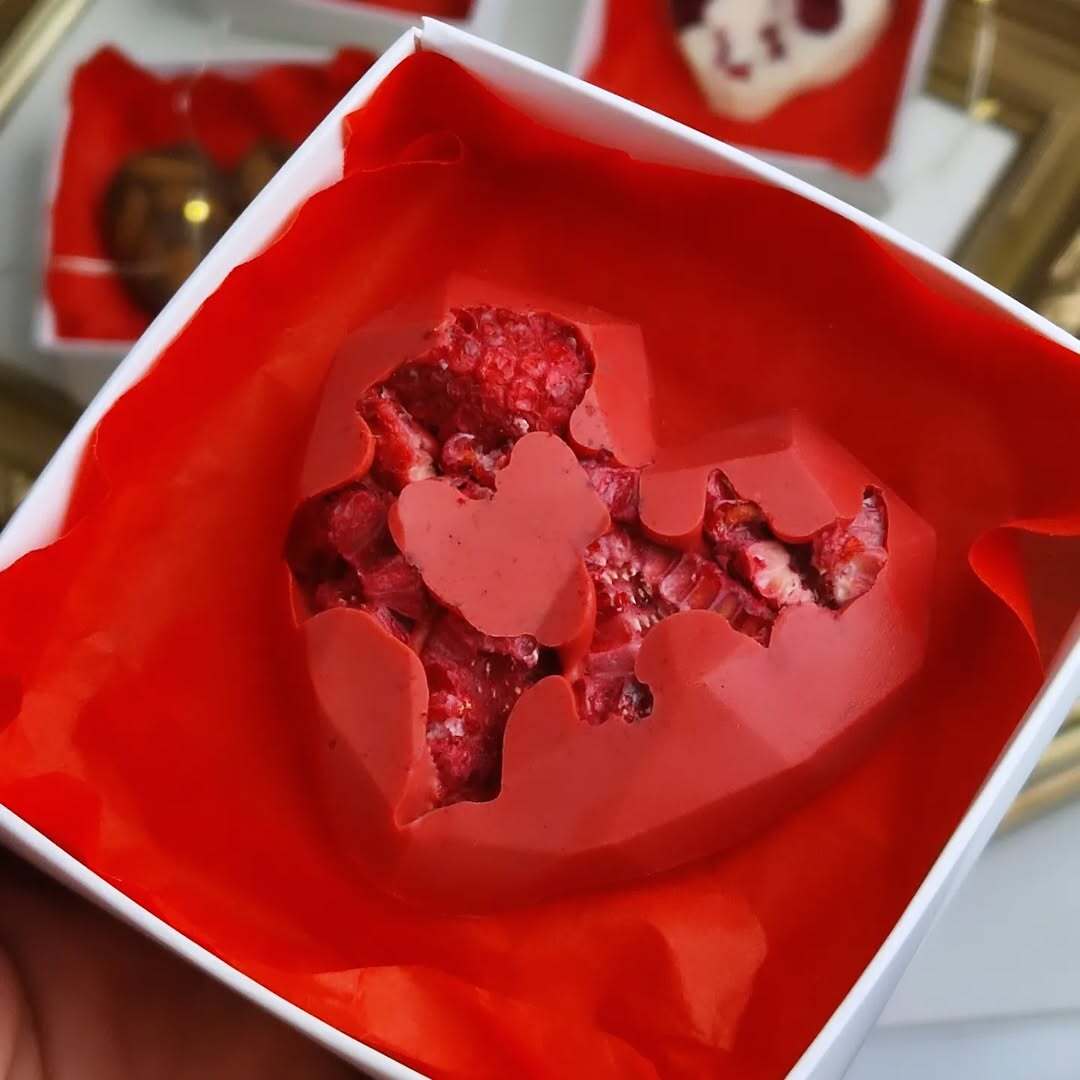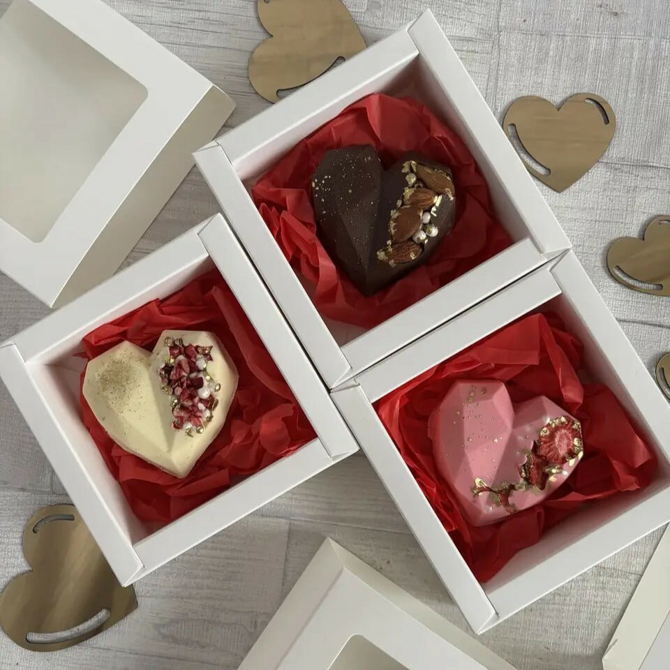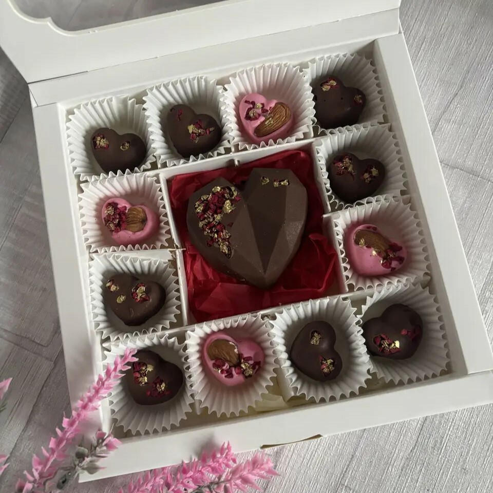 Кожне сердечко створене вручну й доповнене щедрим декором, що робить його не лише смачним, а й візуально дуже апетитним 🍫✨