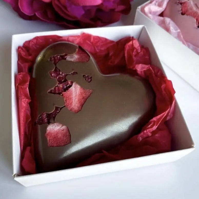 ✨Вишукана шоколадна цукерка у формі серця, яка декорована натуральними інгредієнтами та запакована в елегантну індивідуальну коробочку!❤️
